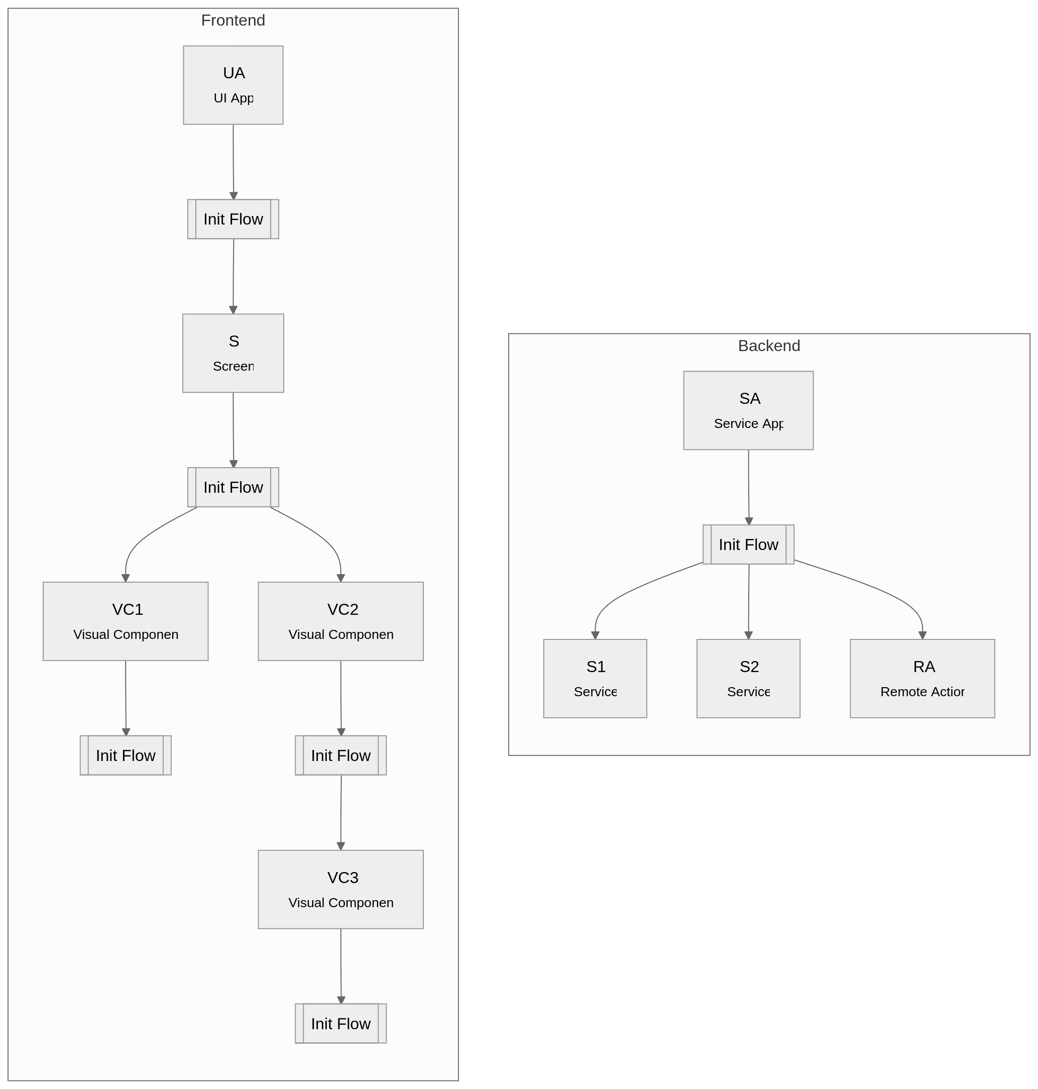 The Init Flow allows to control the initialization phase of each brick in the context tree, using effectively a top-down approach. Here we can see how it looks in our example: